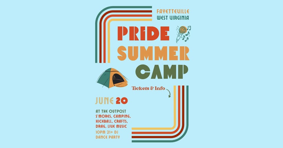 The Outpost - New River Gorge Campground 843 Fayette Station Rd, Fayetteville, WV, United StatesFayetteville Pride is back and this year we’re trying something a little different. Pride Summer Camp is happening at The Outpost NRG - think daytime camp vibes with music, vendors, […]